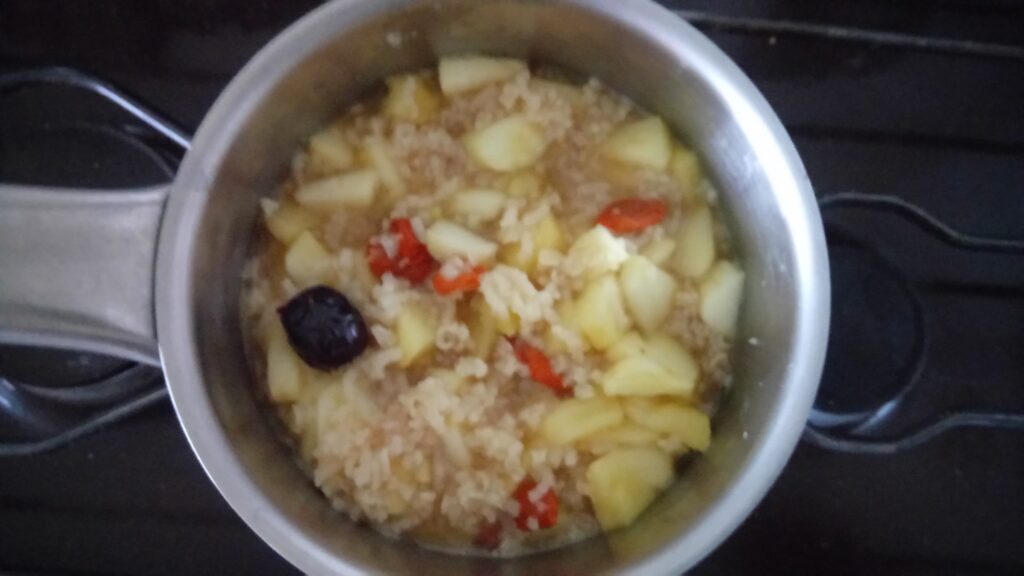 Bouillie de riz et de patates douces Renforce l’énergie digestive et l’Estomac, la patate douce humidifie la sécheresse.